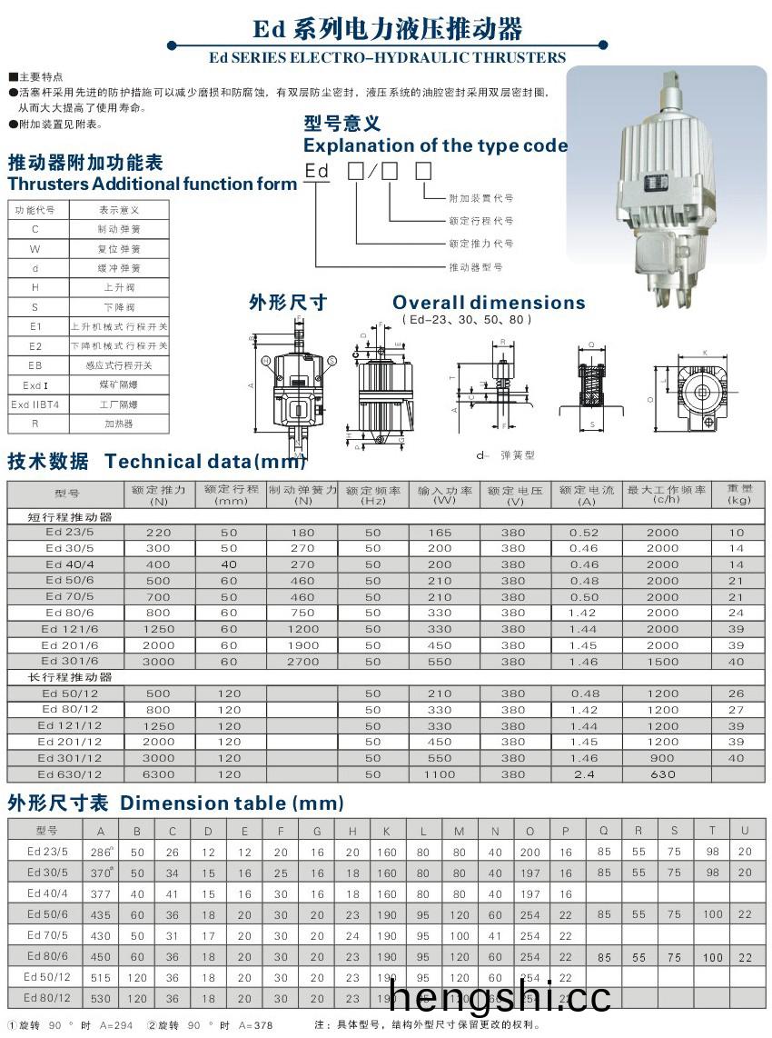 ED係(xi)列(lie)電(dian)力液(ye)壓(ya)推(tui)動(dong)器,適用于YWZ4,YWZ5,YWZ9等電力(li)液(ye)壓製動(dong)器的(de)工(gong)作驅(qu)動。